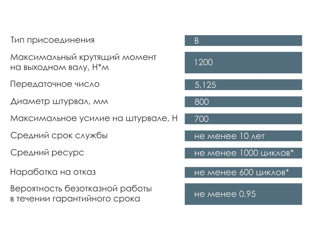* Один цикл работы редуктора соответствует однократной операции закрытия и открытия комплектуемой задвижки