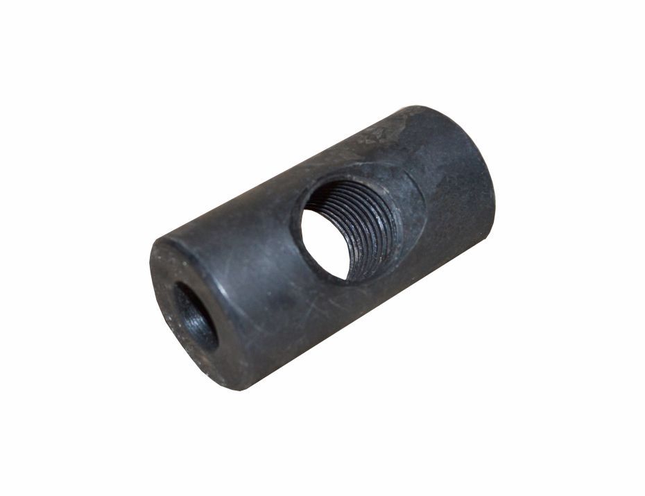 Палец вращается в отверстиях вилки и выполняет роль гайки натяжного винта. При вращении винта вилка и коленчатая ось поворачиваются, перемещая напрвляющее колесо вперед или назад.